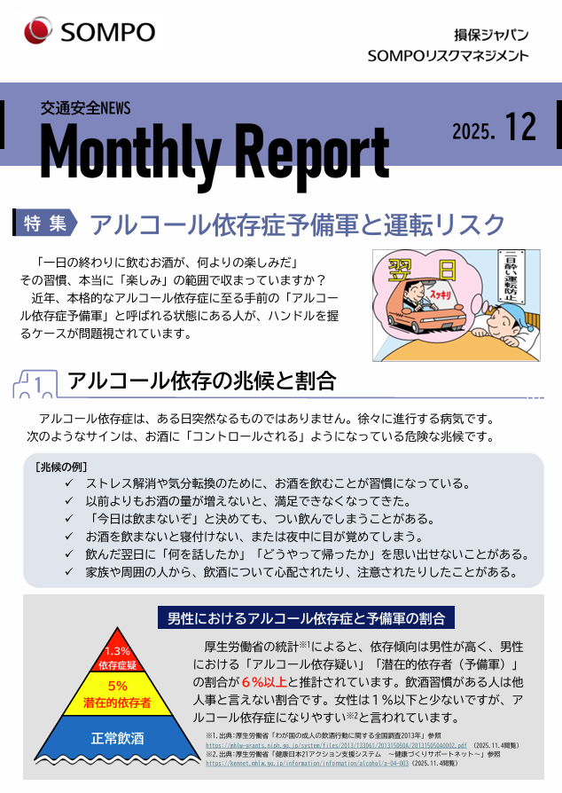 今回は年末に近付くにつれお酒を飲む機会も多くなるであろう時だからこそ気を付けたい、アルコールに関するニュースです。