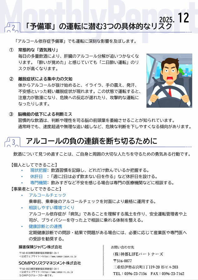 お酒を飲んだ状態で運転をすることはもちろんですが、アルコール依存症やその予備軍である状態で運転することも非常に危険な行為です。
